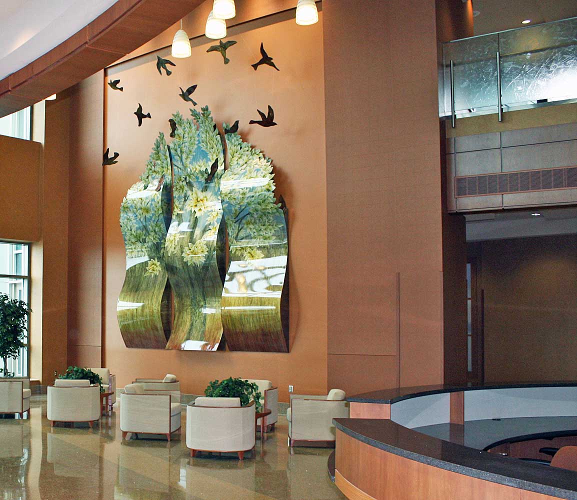 "Peter installed our wall piece yesterday. The light show began!! It takes on a life of its own. My husband and I were entranced by the variety of colors created. Next year - a new piece!!"